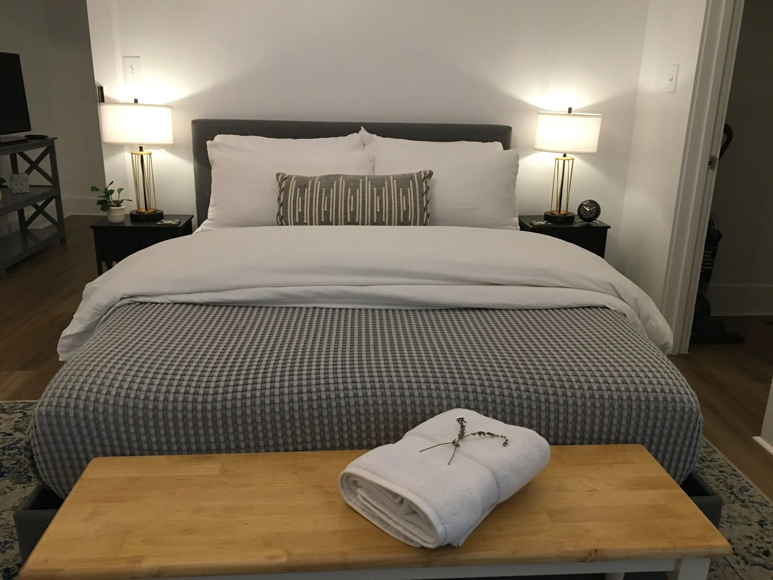 Make comfort and relaxation the priority in the luxurious bathroom that features a renovated shower and spa-like finishes. All the essentials are provided for your convenience including towels, soap, shampoo, conditioner, lotion, and hair dryer. We also provide bath robes and slippers for your comfort.