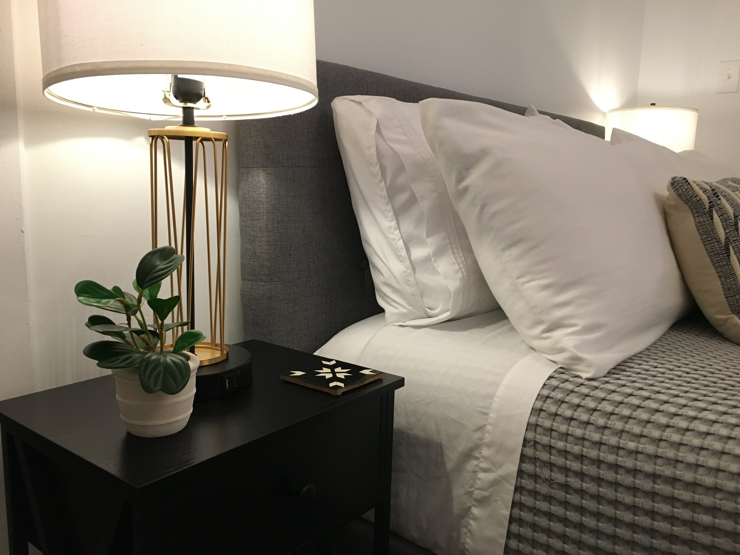 Your spacious bedroom features a comfortable Queen size bed with a 12" memory foam mattress, white cotton linens, and extra pillows for increased comfort. There is plenty of space to store your clothes in the large closet. The bedroom also has a laundry area complete with ironing set. Two nightstands with soft whimsical lights, and a separate desk area perfectly designed for productivity. You can also walk out your front door and enjoy the 100s of shops, bars, and restaurants with authentic cuisine, where locals dine.